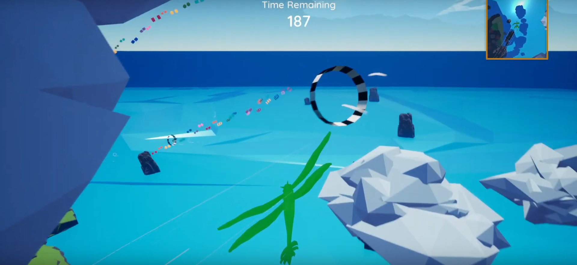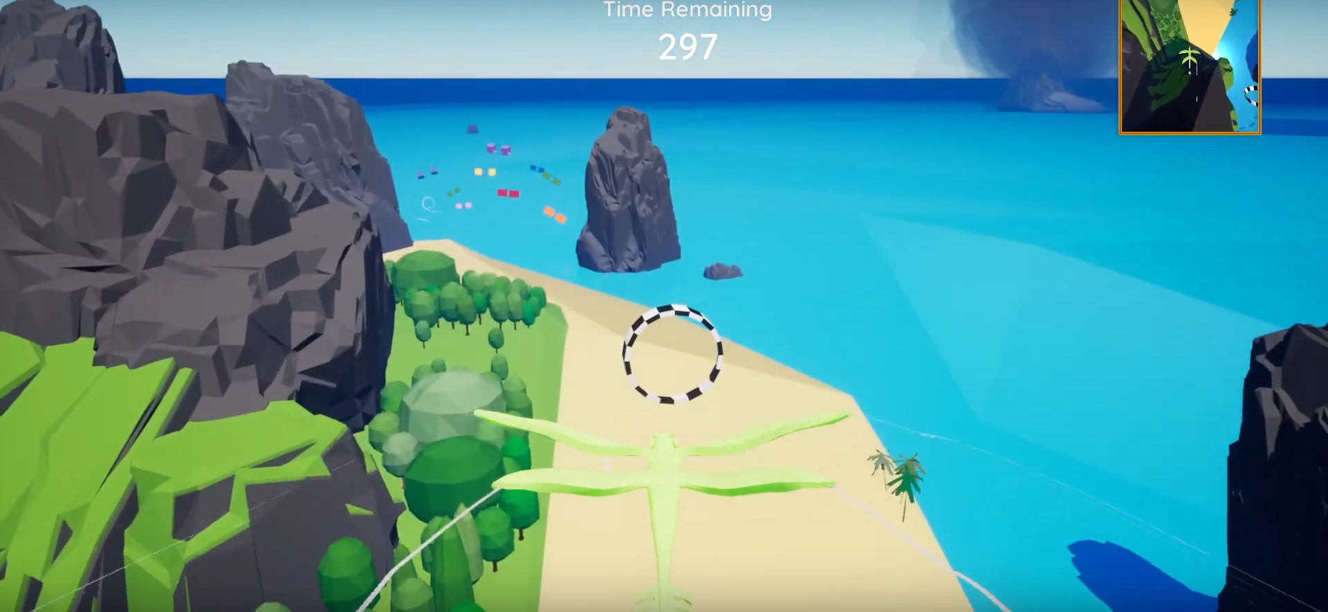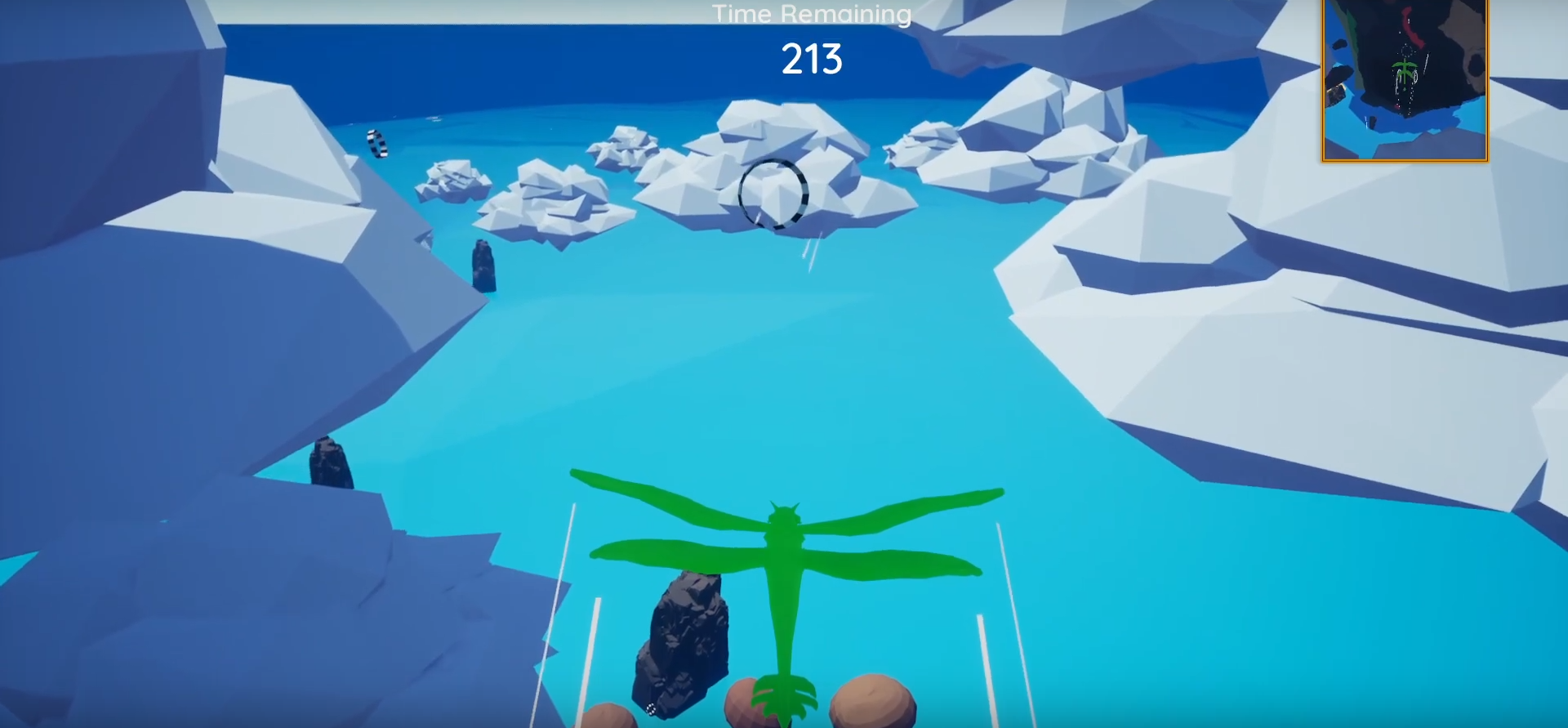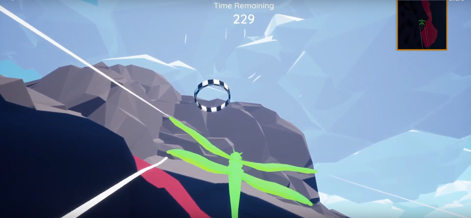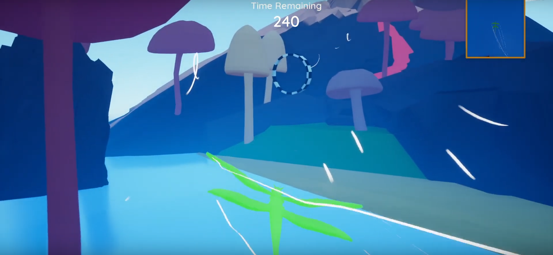Soar through two low-poly racetracks as a fledgling, four-winged windwyrm. Fledgling windwyrms love to race, hoping to someday break the sound barrier like their parents can. You'll be racing against the clock to pass enough lap markers in time. Keep balance between your two sets of wings.